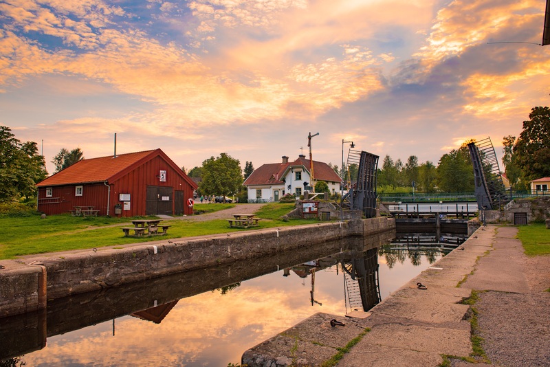 Broar, Miljöbilder, Slussar & Slussning Foto Oskar Lürén Forsvik 5 knop Kväll Solnedgång Bildspecifikationer