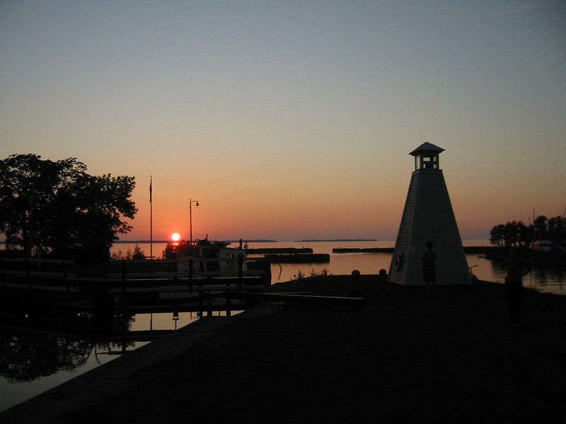 Solnedgång över Vänern vid Sjöslussen i Sjötorp.