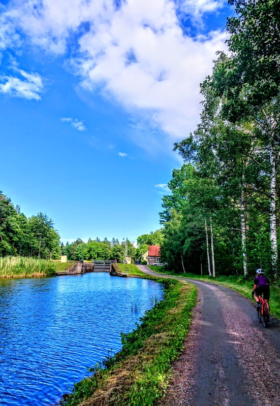 Cykling längs Göta kanal. 2020. Bilden får användas mot att Rövardöttrar ges fotocred.