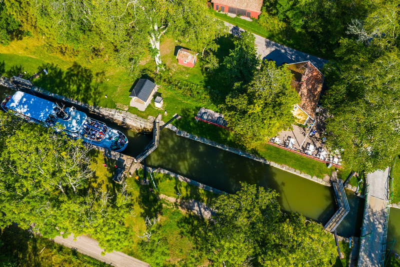 Passagerarbåt, Se slussning, Slussar & Slussning Flygbild, Foto Jesper Anhede 2019 Hajstorp Flygbild M/S Bellevue Skördefest Bildspecifikationer