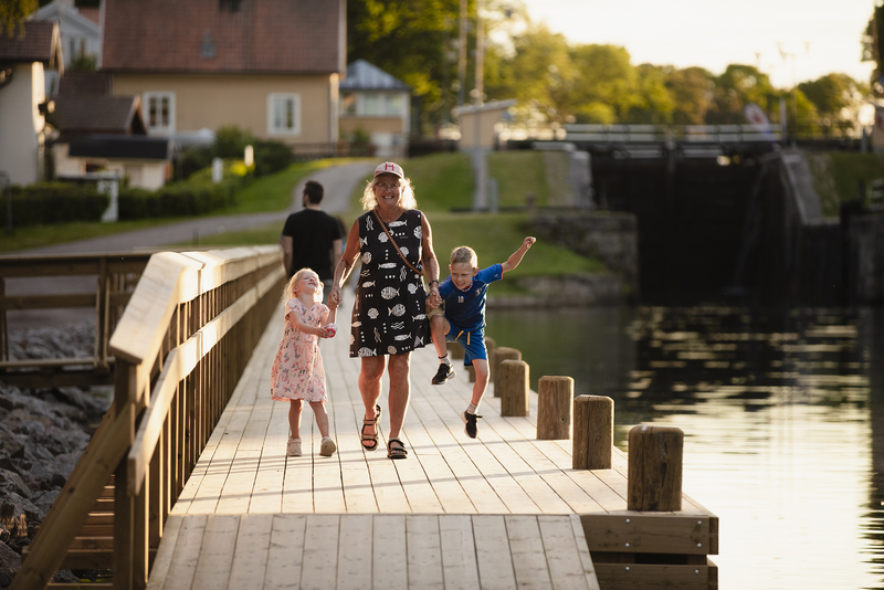 Gästhamnar, Se & Göra, Se slussning Foto Jacob Sjöman 2020 Berg Barn Brygga Familj Kväll Bildspecifikationer