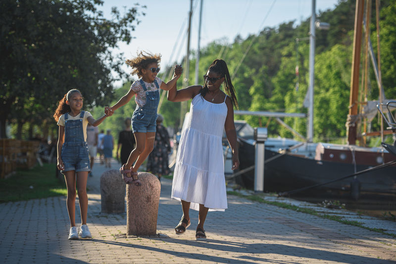 Familj i kanalhamnen. Sommar 2021.