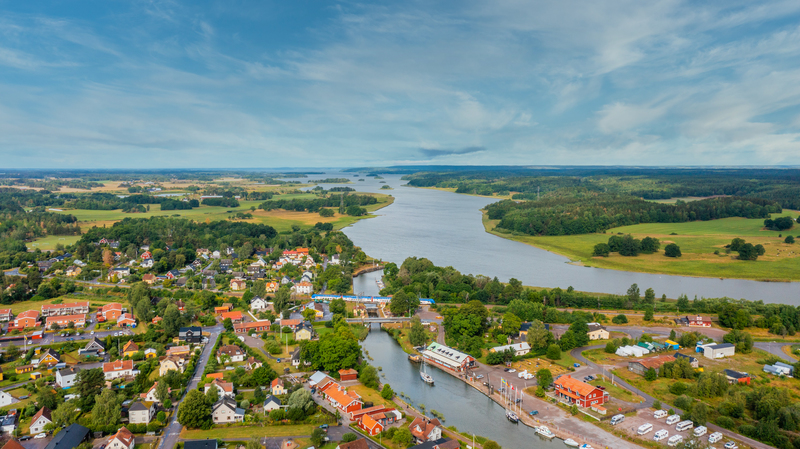 Broar, Gästhamnar, Slussar & Slussning Flygbild, Foto Carl Schnell, Förklarande bilder Norsholm Broöppning Flygbild Gästhamnsservice