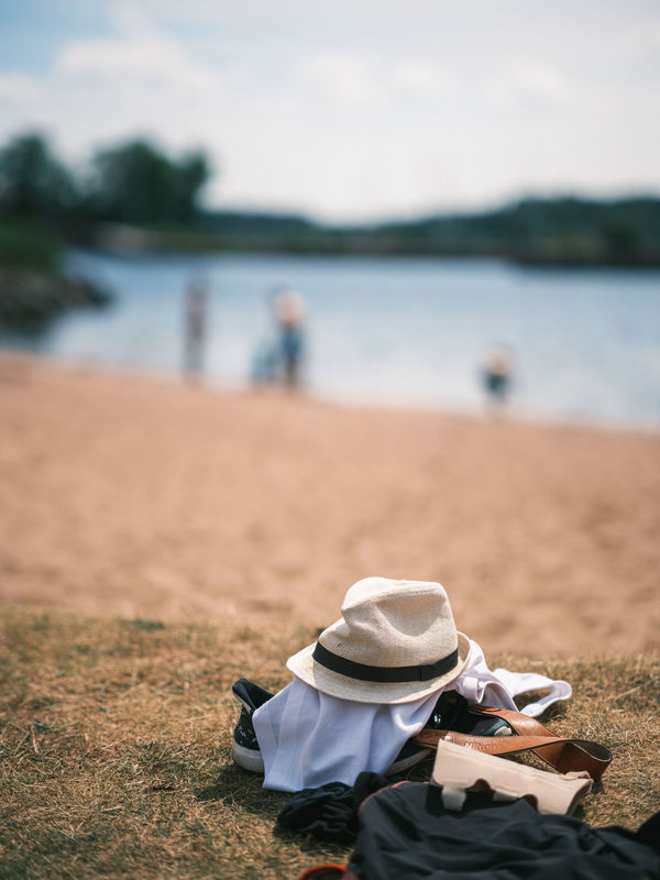 Bad vid Göta kanals mynning i Sjötorp vid Vänern. Sommar 2021.