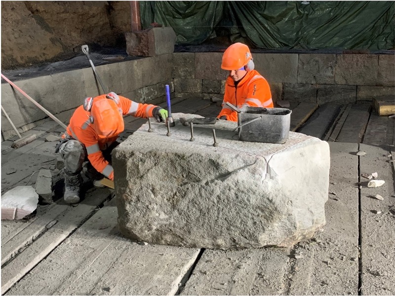 Stenhuggare vid Norrkvarns kulvert, vintern 21-22.