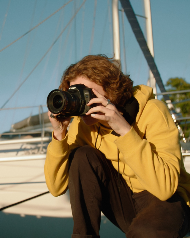 Fotograf fångar båtar i en av Göta kanals hamnar. 2022.