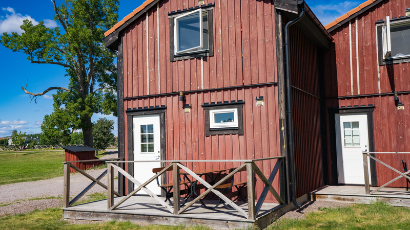 Bergs slussar Vandrarhem och Café, campingstugor vid Bergsbassängen. 2022.