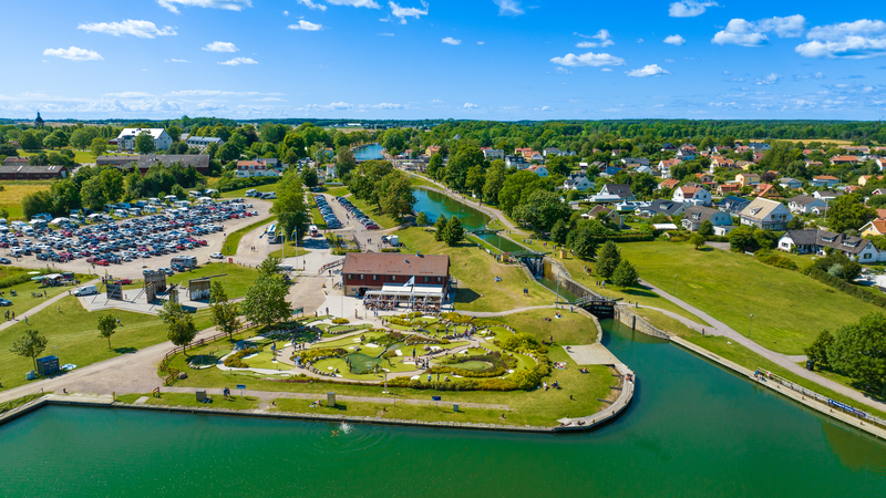 Boende, Byggnader, Gästhamnar, Mat & dryck, Översiktsbilder, Se & Göra, Vandrarhem Flygbild Carl Schnell Berg Flygbild Minigolf Bildspecifikationer