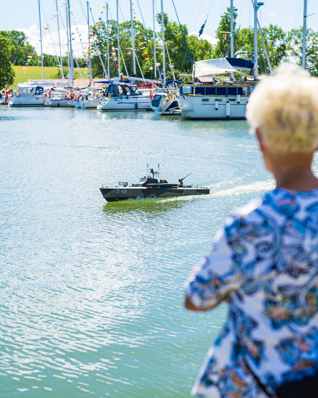 Uppvisning av modellbåtar i Bergsbassängen, i samband med firandet av kanaldagen i Berg 9 juli 2022.