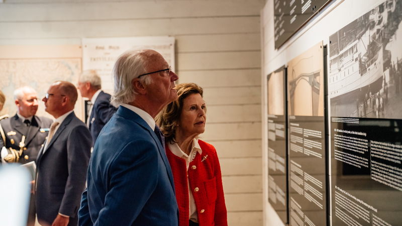 Kungaparet besöker utställningen Från idé till verklighet i G:a Motala verkstad i samband med kanaldagen i Berg 9 juli 2022.