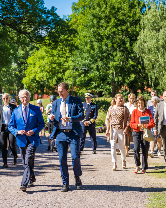 Göta kanalbolags vd Roger Altsäter tillsammans med H.K.H. Carl XIV Gustaf vid kanaldagen i Berg 9 juli 2022.