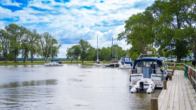 Fritidsbåtar vid brygga. 2023