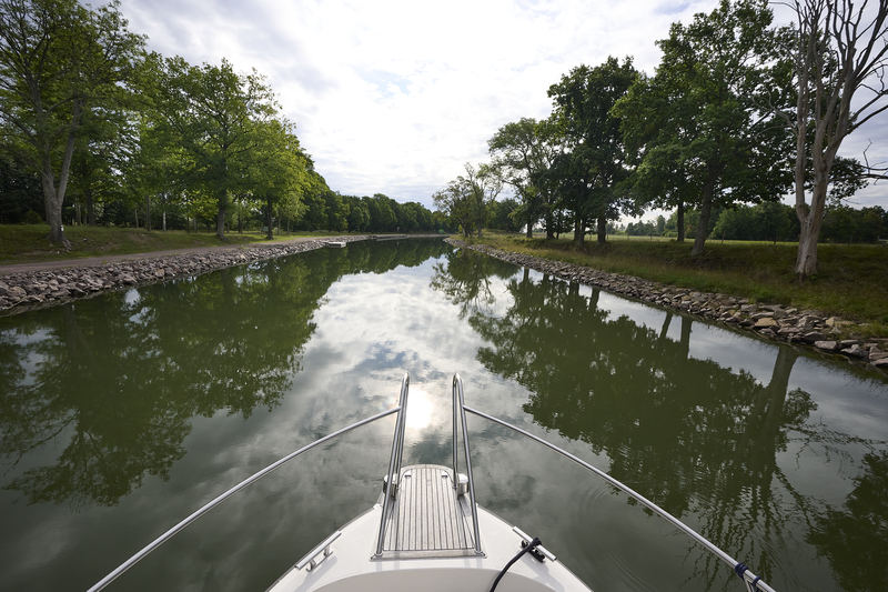 Resa i konvoj med fritidsbåt på Göta kanal sensommaren 2023.