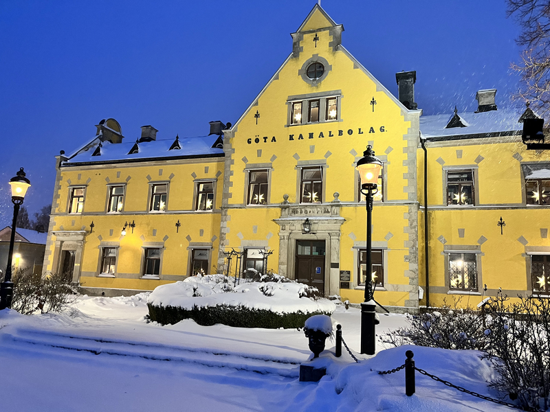 Göta kanalbolags huvudkontor i snöfall. 2023.