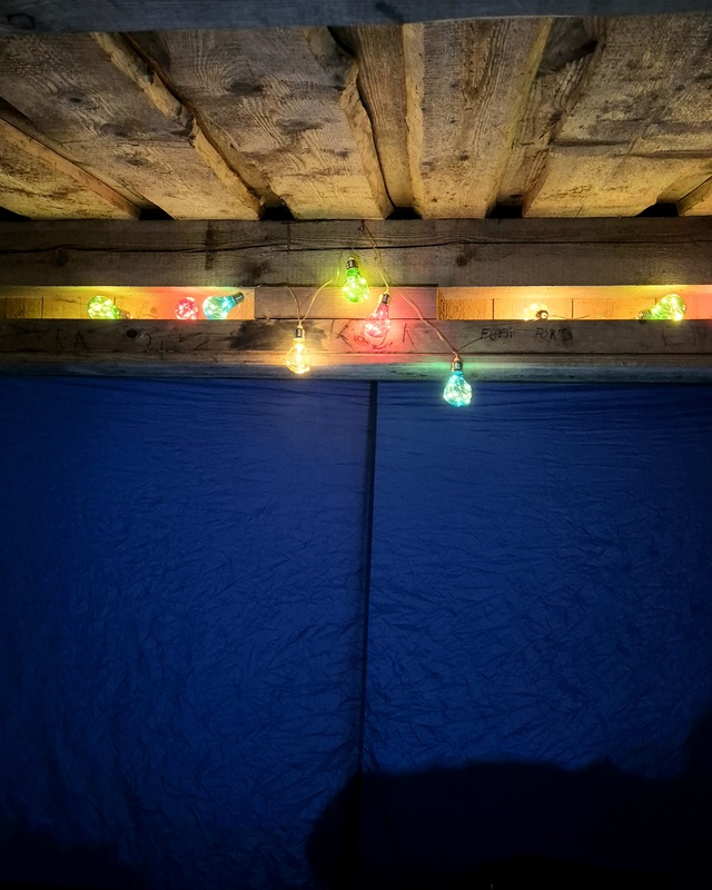 Belysning för att göra övernattningen i vindskyddet mysig. 2024.
