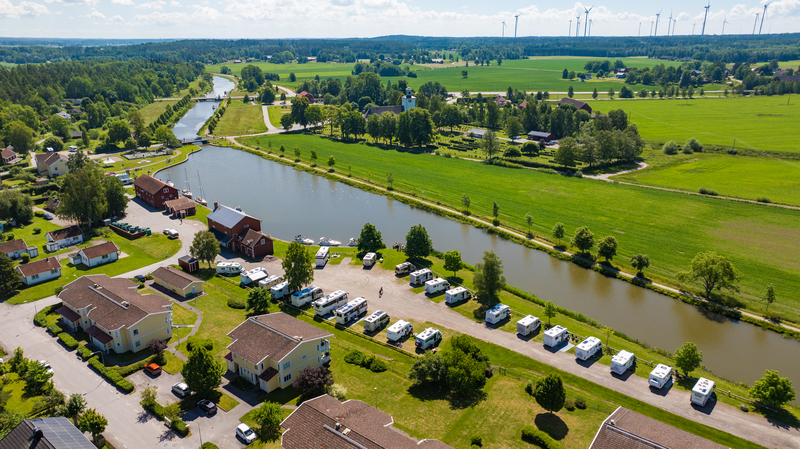 Byggnader, Gästhamnar, Ställplats Flygbild, Foto Carl Schnell Lyrestad Ställplats