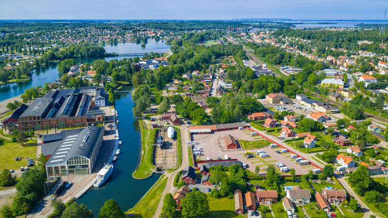 Flygbild över Motala G:a verkstad ställplats 2025